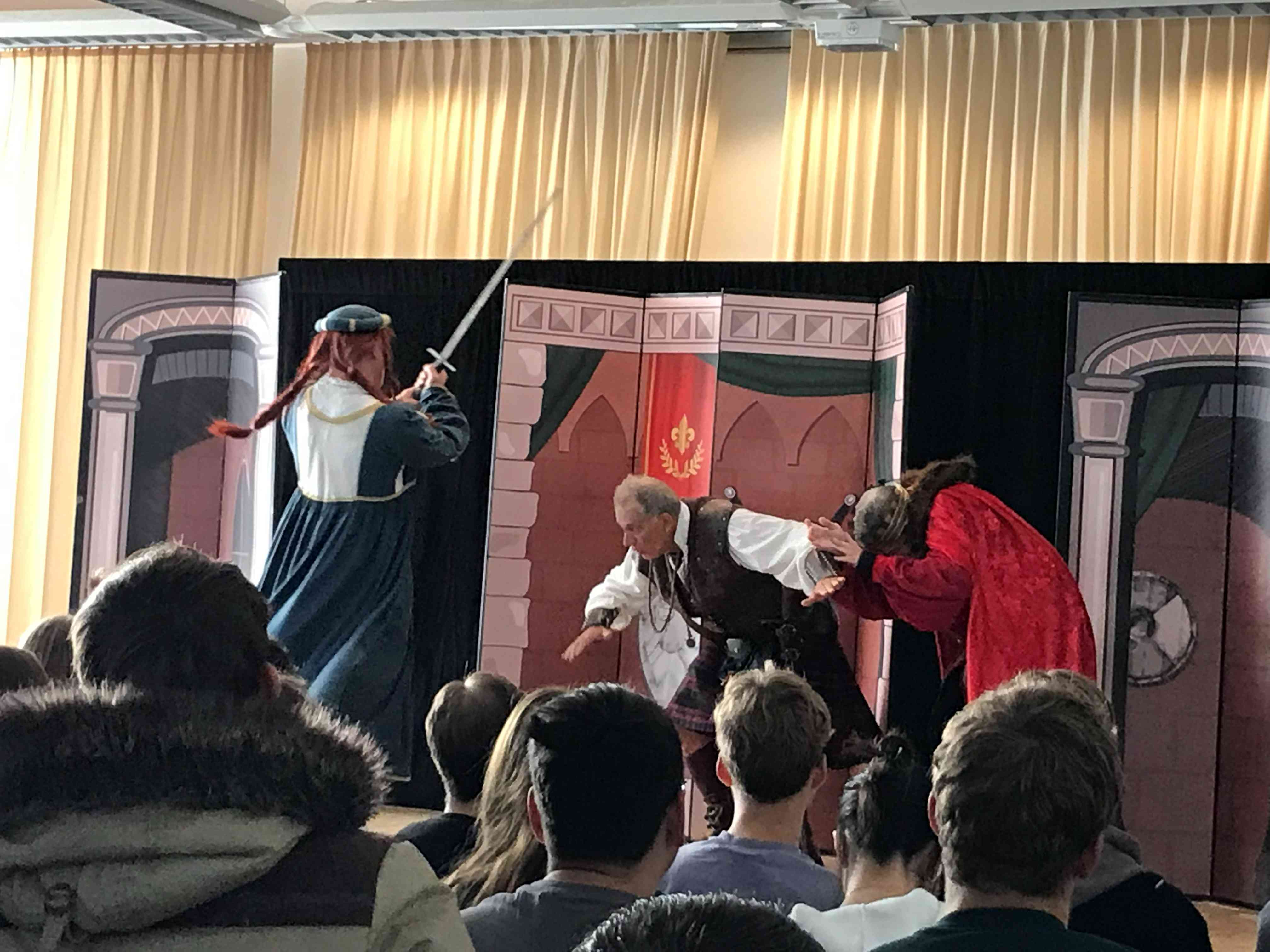 On 2nd October, a group of three actors visited our school and performed Macbeth, one of William Shakespeare’s famous tragedies. The group is originally from Great Britain but is now based in Italy and touring around Europe. We were lucky that our school was one of their stops.